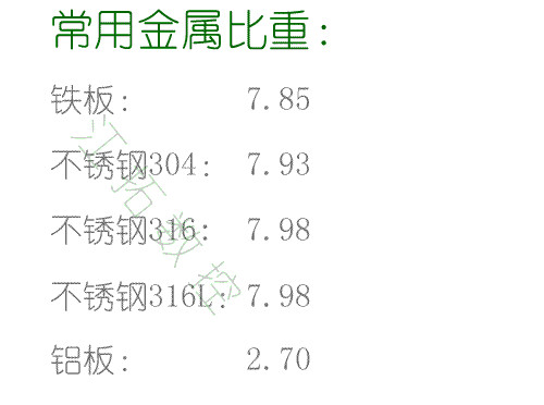 沖孔網(wǎng)重量計(jì)算器 >>沖孔網(wǎng)常用板材金屬比重表